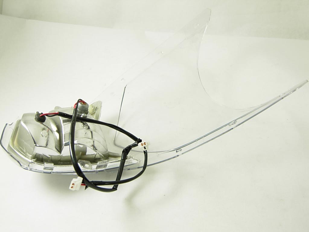 Replacement Windshield With Head Ligth for specific import scooters, ATVs, Go Carts and other powersports vehicles.